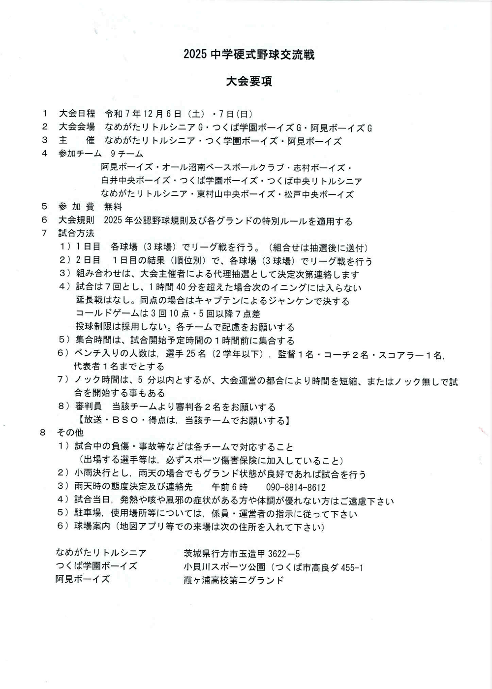 ※会場により投球カウント・BSO・スコアボード等のご協力を保護者の方に当日お願いする場合がございます