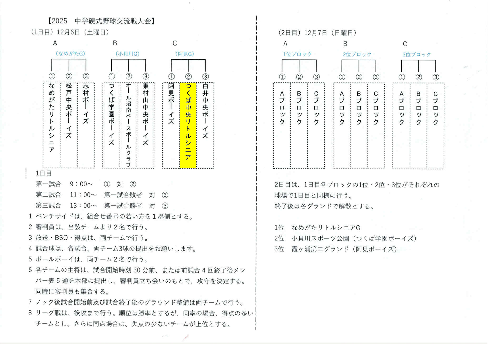 つくば学園B | 3 | 0 | 3 | 0 | 0 | 0 | x | 6 |